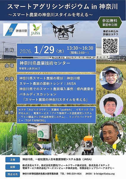 この度、2026年1月29日(木)に神奈川県一般社団法人日本農業情報システム協会(JAISA)様が主催する、