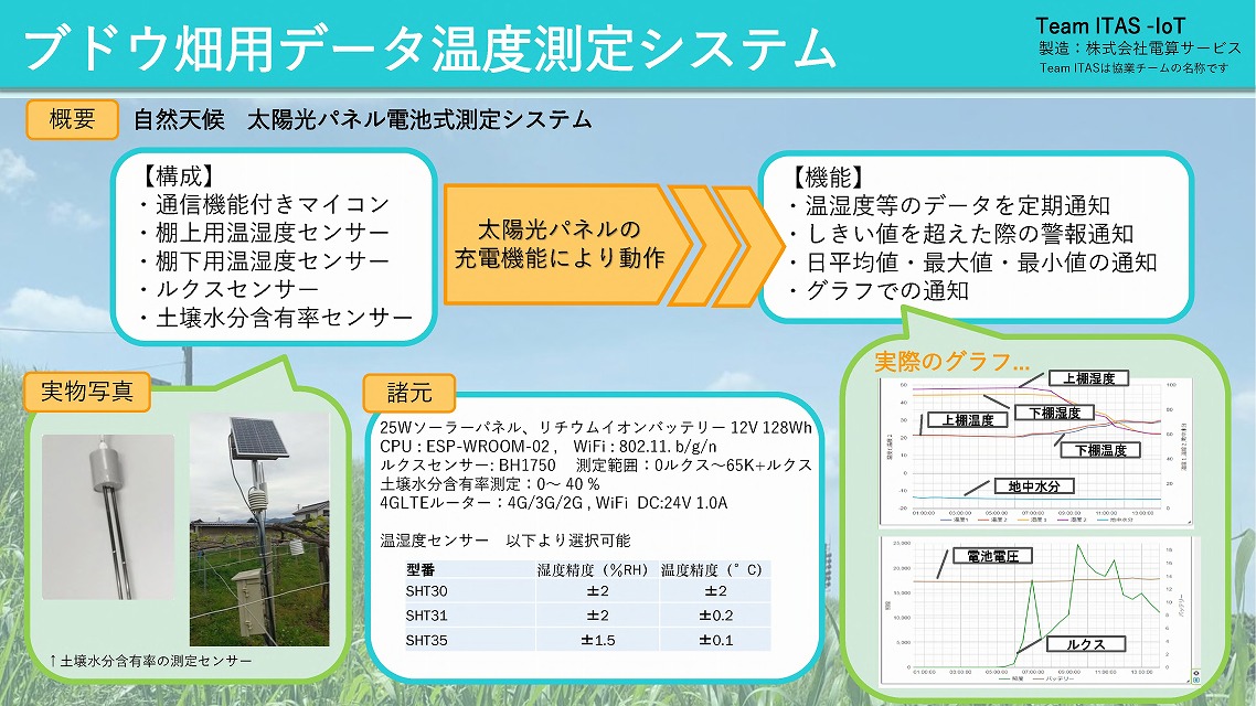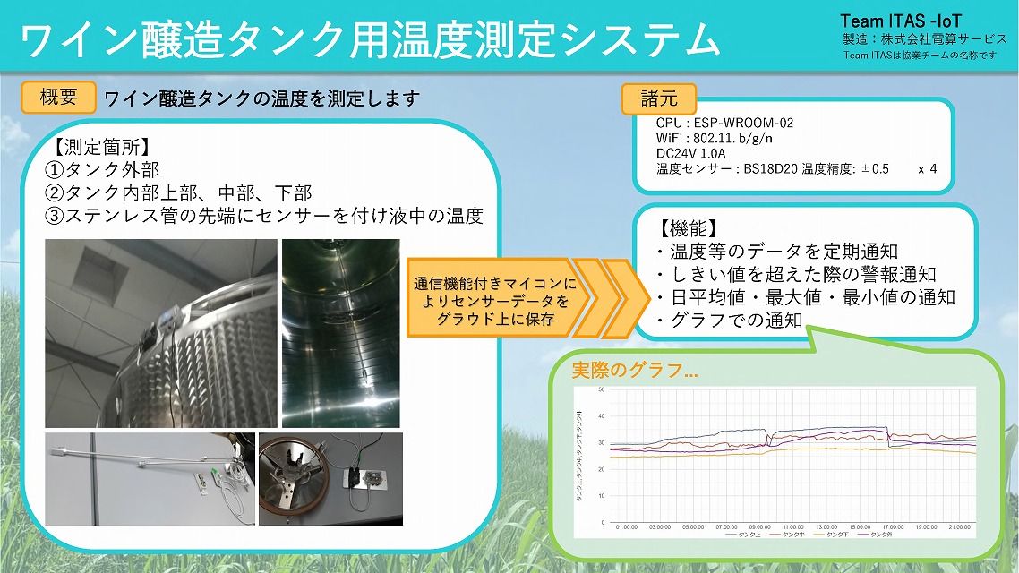 当日は当社の代表取締役社長小幡が出席し、IoT事業である「ブドウ畑用データ温度測定システム」を公開いたします。